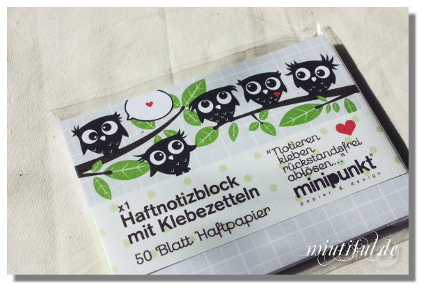 Also, habe ich mal in einer kleinen Box von mir gekramt, in dem sich allerlei Dinge befinden, wie Sticker, bunte Klebebänder, Notizbücher etc. Und ich fand ein kleinen Block mit Haftnotizblättern, welches mir von minipunkt zugeschickt wurde, was aber viel zu schön ist um es überhaupt zu benutzen: