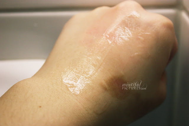 Das Peeling hat eine gelartige Konsistenz und ist farblich leicht milchig. Man braucht für das gesamte Gesicht nur ein kleinen Ausquetscher (ungefähr so groß wie auf dem Bild, wenn nicht auch noch weniger), das Produkt ist also sehr ergiebig.
