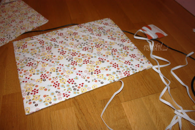 Wenn man jedes Mal vor dem Kleben an dem Stoff ein wenig zieht, so dass es gut spannt, wird es später keine Unebenheiten geben.