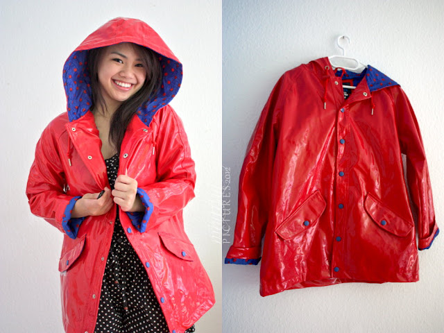 Die Regenjacke hat vorher 21€ gekostet, aber die wollte wohl niemand haben und für 3€ fand ich sie zu ulkig um sie nicht nicht-mitzunehmen :3