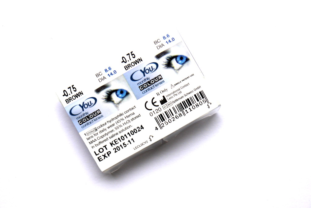 CYou Monthly ColourFarbe: BraunDurchmesser: 14,0mmBasiskurve: 8,6mmWassergehalt: 55%Haltbarkeit: 1 MonatPreis: 19,99€ (zur Zeit im Sale für 12,99€) auf lensprofi
