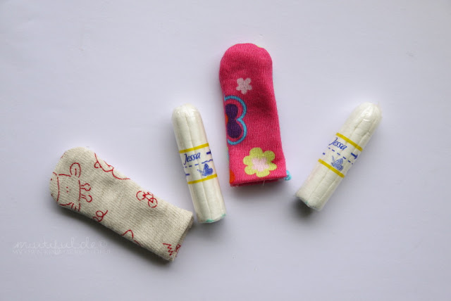 Es sind so etwas wie Socken für Tampons! *höhö* Zwar kann man eigentlich schon erahnen, was sich darin befindet, aber ich finde es trotzdem angenehmer ein Tampon in solch einer Socke aus der Handtasche zu kramen, als die ganze Kosmetiktasche oder das Tampon so mitzunehmen.