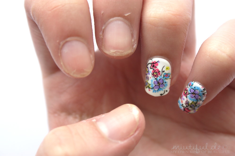 Dabei sind die Motive echt schön, aber dann doch lieber welche mit Folie die kleben dann auch auf dem ganzen Nagel. 😉