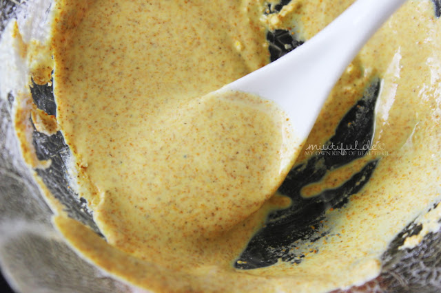 Aber die Jahre vergingen und irgendwann hatte ich so viele Produkte ausprobiert, sodass ich gar nicht mehr an die Kurkuma-Wurzel gedacht habe, bis ich vor einiger Zeit im Asia-Laden vorbeischaute und die Wurzel in Pulverform im Gewürzregal entdeckte. Ich nahm mir das Tütchen mit, recherchierte zu Hause nochmal sicherheitshalber um mich zu vergewissern, dass es für die Haut wirklich geeignet ist und mixe mir seither wöchentlich eine Maske zusammen, die ich wirklich gern mag.