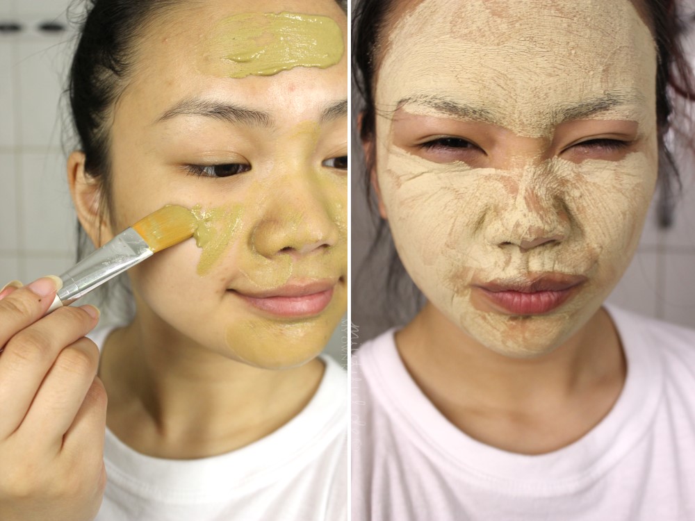 Der Brei kühlt die Haut anfangs wunderbar und durch das Verteilen der Maske mit dem Pinsel in einer relativ dünnen Schicht trocknet die Maske auch sehr schnell – man muss nur darauf achten, dass man die getrocknete Maske nicht allzu lange auf der Haut lässt, denn sonst fängt man an zu krümeln. Das Pulver ist aber im Vergleich zu anderen Masken aus der Drogerie sehr fein und lässt sich sanft und schnell von der Haut abspülen.