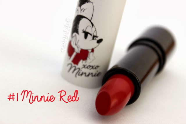 #1 Minnie Red ist ein Rot mit einem leichtblauem Stich und gehört daher perfekt in mein Beuteschema. (Auf dem Lippenswatch sieht er leider etwas heller aus als er es in Wirklichkeit ist.)