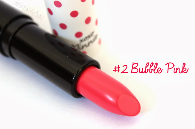 Der Lippenstift #2 Bubble Pink sieht wirklich sehr nach Bubblegum aus (könnt ihr euch an diesen Zahnpasta-Kaugummi aus der Tube vom Kiosk erinnerin?). Eine sehr schöne Farbe, die sicherlich sehr süß an Damen aussieht, die einen rosanen Teint haben, aber an mir sieht er leider leicht schrecklich aus.