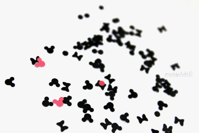 In solch einem kleinen Döschen befinden sich neben Mickey-Maus Köpfen noch Schleifen und Punkte, was ich sehr schön finde, da man dadurch das Design etwas variieren kann und die Nägel nicht zu überfüllt aussehen mit nur Mausköppen.