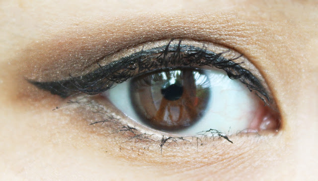 Die Lidschattenfarben legen auch auf dem Augenlid mit Einsatz eines Eyeshaowprimers auch keine bessere Performance hin: Obwohl ich versucht habe mit möglichst allen Faren ein eher kräftigeres, dunkleres Make Up zu kreieren, wurde daraus irgendwie ein absoluter Einheitsbrei. Auch wenn ich mehrmals die helleren Farben im Innenwinkel angesetzt habe und auch wie dämlich im Schwarz rumgepatscht habe, ist kaum etwas zu erkennen.