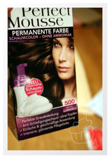 Also, habe ich micch für das Perfect Mousse von Schwarzkopf entschieden (die Werbung sah so interessant aus…) und zwar in Mittel Braun.