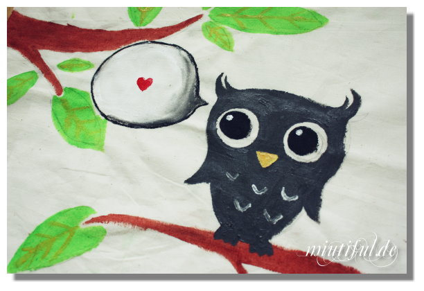 Das Motiv mit den Eulen auf den Ästen fand ich so süüß, dass ich mir dachte, dass ich mich mal einfach davon inspirieren lassen sollte… Ich hab das Motiv eigentlich größtenteils abgemalt und hier und da ein bisschen geändert ^-^