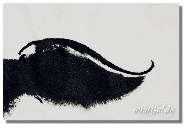 Im nächsten Schritt mit schwarzer Stoffmalfarbe grob die Fläche des Moustaches ausmalen, aber nicht so nah an den Rändern… die übernehmen wir später!