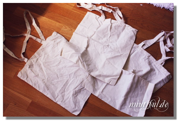 Weil ich die Beutel natürlich richtig sorgfältig aufbewahrt habe (und zwar zusammengeknüllt in irgendwelchen Ikea-Boxen!), mussten die Beutel zunächst glattgebügelt werden!