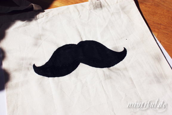 Für die Mr. Moustache-Tasche, kurz Google fragen, wie ein ordentlicher Oberlippenbart denn aussieht, sich das Bild einprägen und mit einem Bleistift auf die Tasche skizzieren: