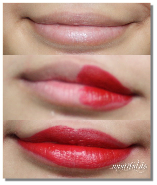 Und wie schafft man das bei solch knalligen Lippenstiften, dass der Auftrag perfekt wird? O-O