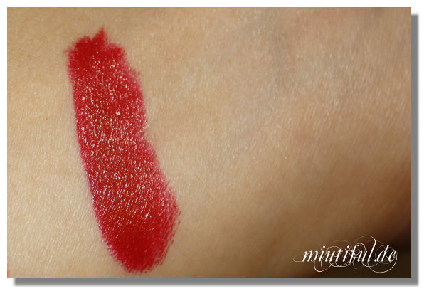 Zuerst zeige ich euch die Swatches von meinem ersten richtig-heftigen rotem Lippenstift (an die Farbe muss ich mich noch erst langsam rantasten…)