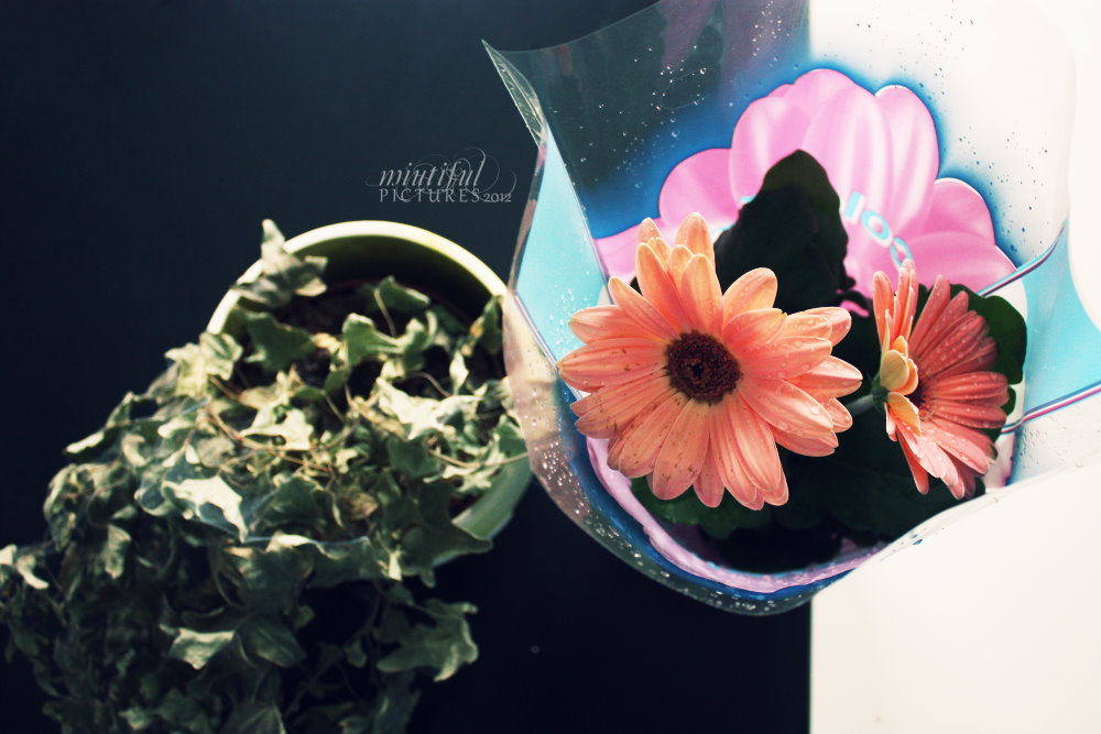 Gerbera bedeutet in der Sprache der Blumen “Du machst alles schöner!”… vielleicht schaffen die Blumen es ja mein Zimmer mehr Leben einzuhauchen und etwas länger schön zu halten *w*