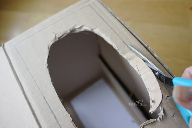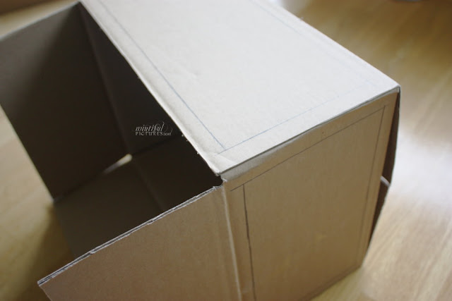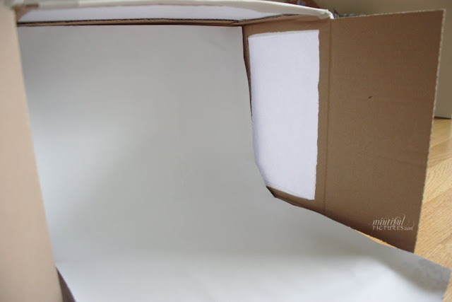 Ich habe mich für eine breite Lightbox entschieden, anstatt eine hohe und habe die obere Klappe mit einer Schere entfernt.
