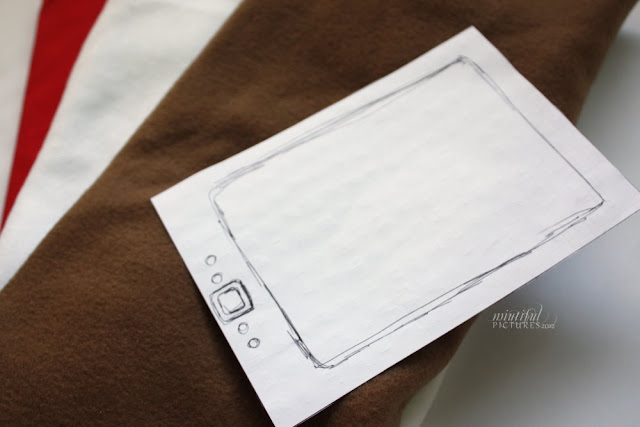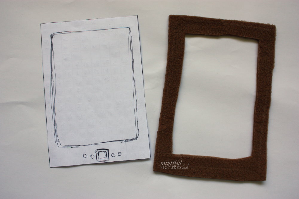Dann in ein Stück Fleece die Öffnung für den Bildschirm schneiden: