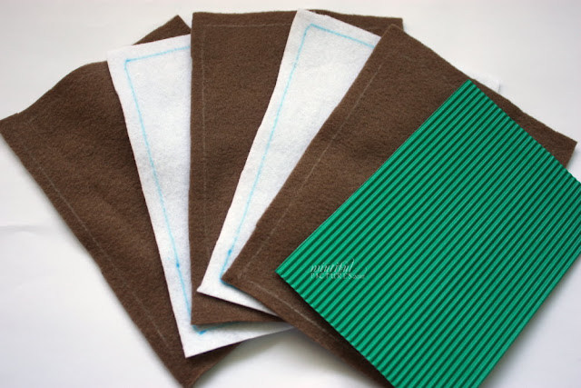 Dann mit der Schablone 3x braunen Fleece und 1x Filz ausschneiden