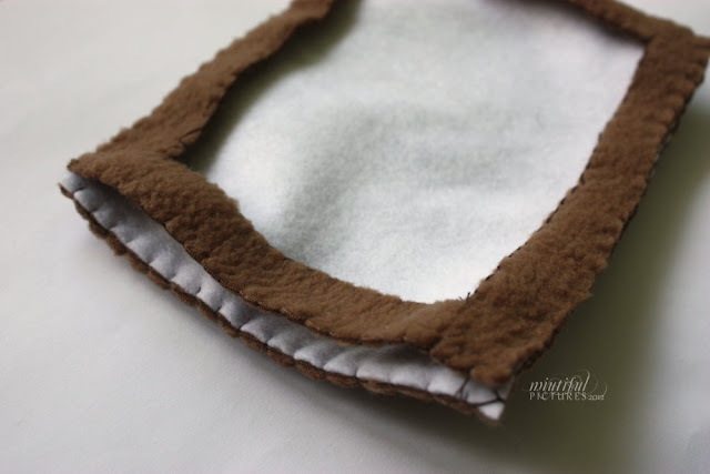Dann das letzte braune Fleecestück je nach Wunsch verzieren.