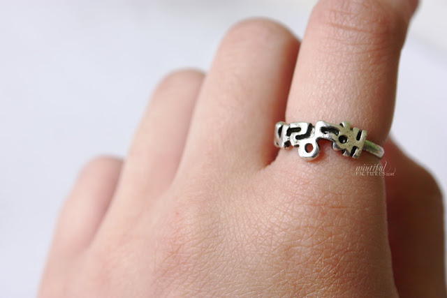 In dem Online Shop war ich bei dem Ring ein bisschen verwirrt, weil der Ring auf den Produktfotos falschrum waren und ich zunächst die koreanischen Buchstaben nicht zuordnen konnte *höhö*