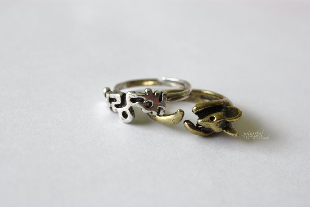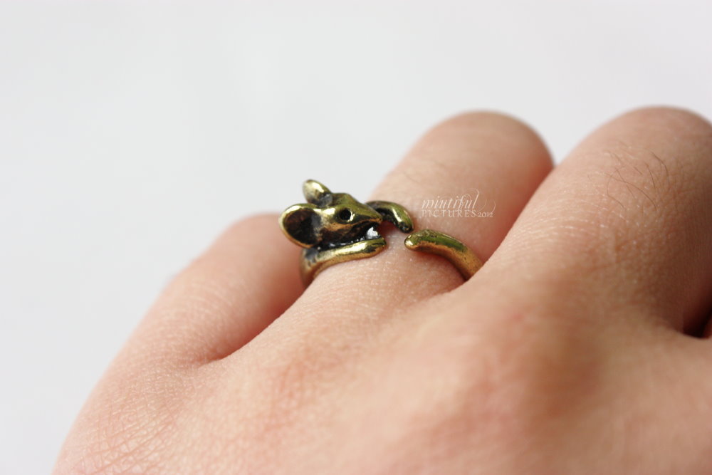 Bei dem anderen Ring handelt es sich um eine kleine Maus, die versucht sich an dem Finger festzuhalten… sehr knuffig. Diesen Ring gibt es ebenfalls in zwei Farben: In Kupfer und in Silber.