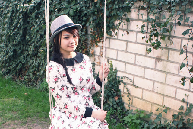 Es ist ein Kleid mit einem schicken Blumenprint, Peter Pan-Kragen (ich mag diese zur Zeit sehr gern) und schwarzen Knöpfen hinten am Rücken: