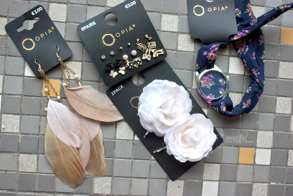 Federohrringe für 3€, Ohrsteckerset für 3€, Haarschmuck für 1,50€ und Armbanduhr für 5€