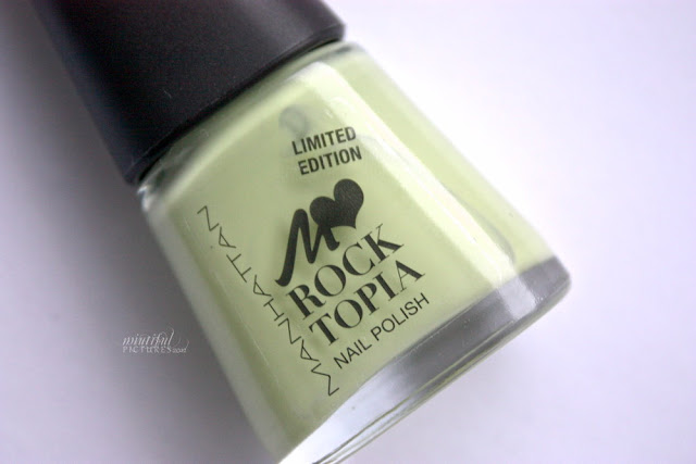 In dem typischen Manhatten-Nagellack-Fläschchen sind 11ml für 3,49€ enthalten und bei dem Rock The Gras-Lack handelt es sich um ein pastelliges Grasgrün mit einem Stich ins Graue.