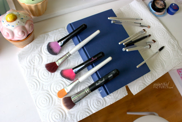 Ausnahmen sind Eyeliner- u. Lippenpinsel, die mache ich sofort sauebr, weil sonst die Cremetxtur eklig wird beim Antrocknen^^