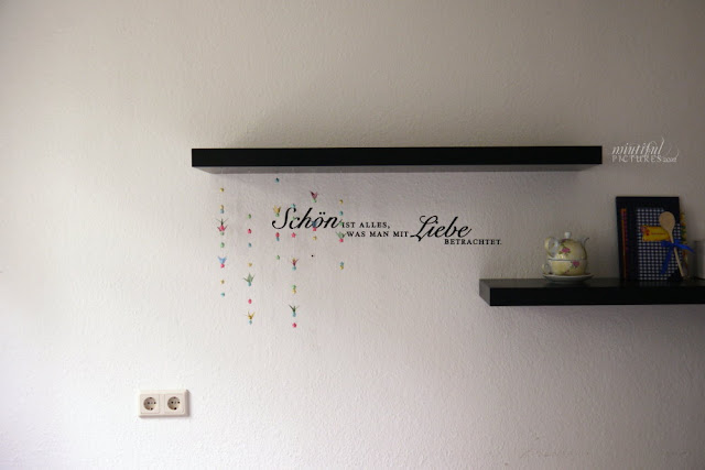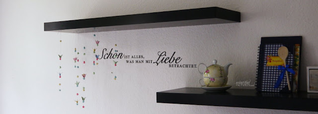Das Anbringen ist supereinfach gewesen: Rückseite abziehen, an die Wand anbringen, Schrift andrücken und die Vorderseite abziehen und Tadaaa~