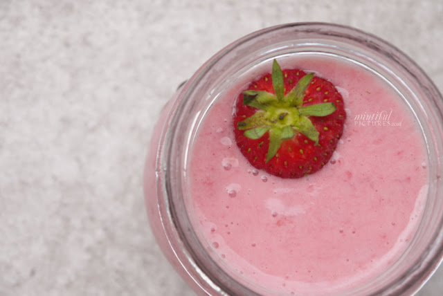 Dadurch, dass die Erdbeeren noch halb gefroren sind, hat mein Smoothie eine leichte Konsistenz wie Eis, das am Schmelzen ist.