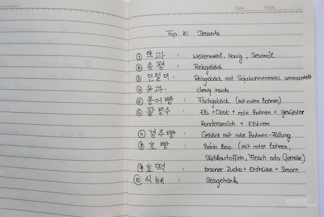 Ich habe zusätzlich noch das Glück, dass ich eine liebe Freundin habe, die selbst Koreanerin ist, nämlich die Libra. In einer ausführlichen und langen E-mail hat sie mir von einigen geheimen Ecken in Seoul erzählt und auch von den tollen Shopping Malls. Dieses vielen Notizen habe ich mir natürlich auch allesamt in meinen Notizbuch geschrieben: