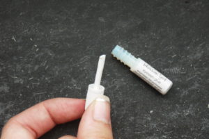 Ich mag diesen ganz gern, da dieser nicht aus einer kleinen Zahnpasta-ähnlichen Tube kommt, wie man es sonst kennt, sondern aus einem kleinen Fläschen, an dessen Deckel sich ein Stiel befindet, mit welchem man den Kleber auf die Wimpern einfach verstreichen kann. (Puuh, was ein langer Satz.)