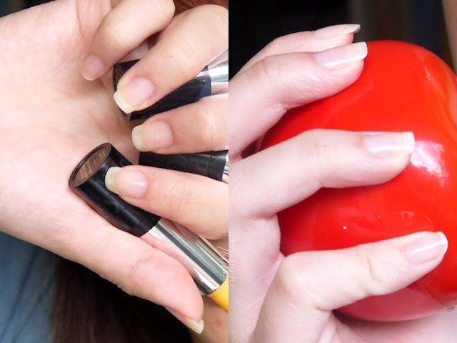 Ich versuchte zunächst meine Nägel ohne Lack atmen zu lassen (hatte irgendwo gelesen, dass das gesund sein sollte), als dies auch nicht klappen wollte und mir meine Nägel ständig bösartig einrissen, fragte ich meine Mama verzweifelt um Rat und sie empfiehl mir stets einen durchsichtigen Lack zu tragen, um so die Nägel zu schützen und zu stärken.