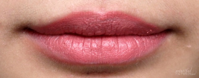 Vom Finish her würde ich sagen, dass es sich hierbei eher um ein Cremig-Samt-Semi-Matt handelt, denn die Lippen haben immer noch einen sehr weichen Glanz – mir persönlich gefällt solch ein Finish besser, da ich sowas viel alltagstauglicher finde als zu matte Lippen, aber wer auf der Suche nach komplett-matten Lippen ist, der wird sich nicht ganz so freuen *höhö*