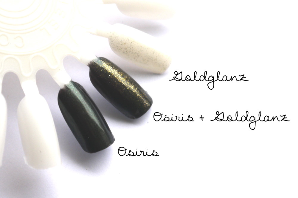 Osiris-Goldgrau ist für mich nicht persönlich nicht unbedingt ein Must-Have, da ich selbst nicht so ganz auf solche Farben stehe, aber in Kombination mit Goldglanz mag ich den Lack dann doch sehr gern.