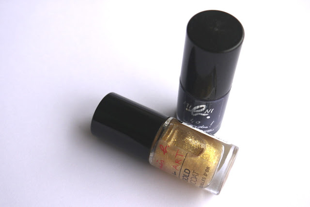 Bei dem anderen Lack handelt es sich um ein Effekt-Lack, um den Nägeln nachträglich Goldsprenkel zu verleihen. Der Goldglanz-Decklack nennt sich Pures Gold, es sind 7ml enthalten und 24 Monate haltbar. Der Originalpreis liegt bei knapp 10€, wobei dieser momentan zu einem Salepreis von 3,99€ zu ergattern ist.