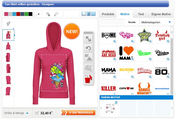 Im Vergleich zu den ersten beiden genannten Varianten ist ein bestellter Motivdruck teurer: Die Preise fangen ohne Motiv beispielsweise bei 4,90€ für eine Alu-Visitenkarte und hören bei 29,90€ für einen Hoodie auf, aber hier ist natürlich auch die Qualität eine ganz andere.