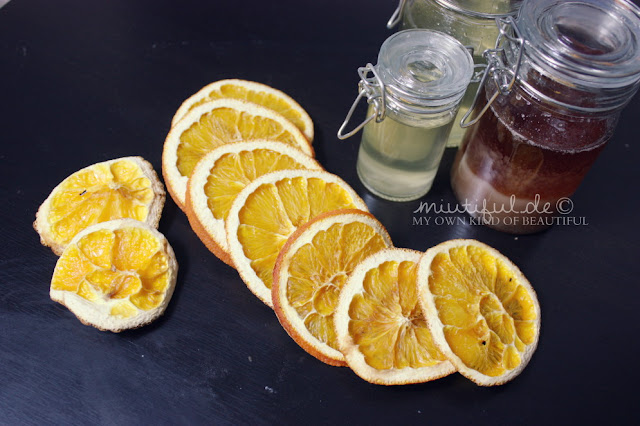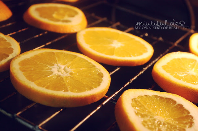 Die Idee mit getrockneten Orangenscheiben ist zwar nichts neues, aber ich finde sie passt einfach perfekt zu Weihnachten und selbstgemacht gefällt mir sowas immer besser ^-^♥