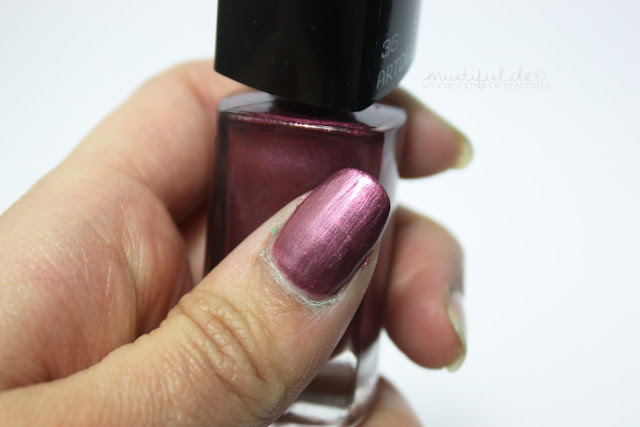 Der Nagellack deckt bereits nach einer Schicht sehr gut, verfärbt die Nägel nicht – aber ich würde einen Top Coat empfehlen, da er bereits nach zwei Tagen splittert.