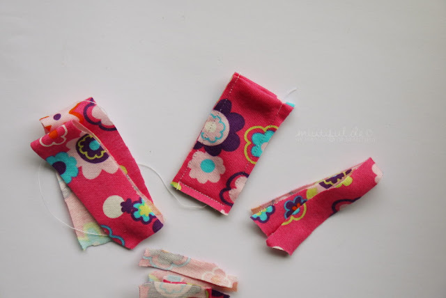 Zunächst werden zwei längliche Stücke Stoff gebraucht – bei mir hatten die beiden Stücke die ungefähren Maßen 10x20cm, aber ich war auch wirklich sehr großzügig.