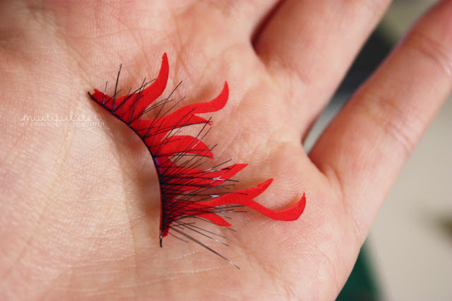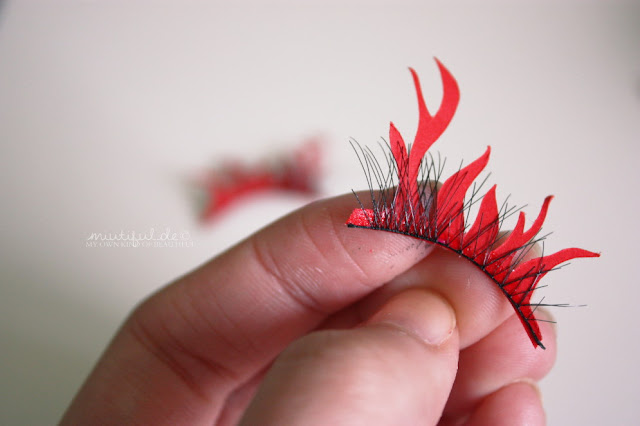 Und dann sind die selbstgemachten feurigen Paper Lashes fertig – man darf beim Anbringen nur nicht vergessen die Wimpern von der Länge her anzupassen (das habe ich bei meinen nämlich vergessen *höhö*).