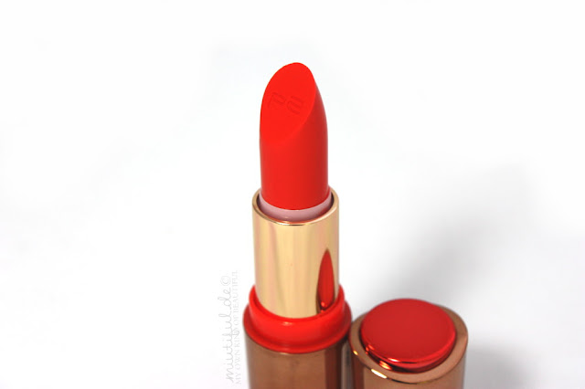 Der Lippenstift ist p2-typisch schön cremig und feuchtigkeitsspendend. Die Farbe ist sehr gut deckend und unbeschreiblich schön knallig. Die Haltbarkeit konnte ich noch nicht komplett testen, aber ich habe bereits bei anderen gelesen, dass sie sehr gut sein soll.
