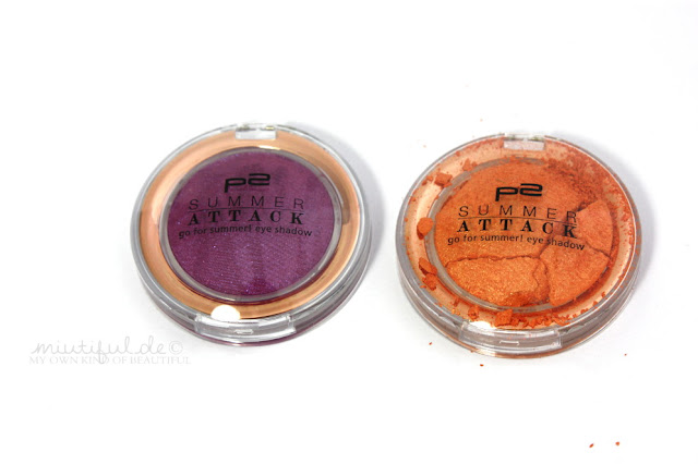Ich habe Violett und Orange zum Testen zugeschickt bekommen, leider ist 030 Papaya Margarita bei mir bereits im Päckchen zerbröselt (ist aber wohl nicht nur meinem Lidschatten so ergangen, sondern auch einigen anderen…).