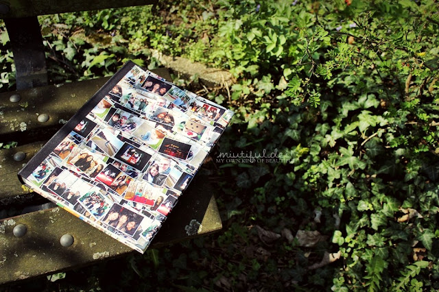 Das Album hat die Maße 23x32cm (also minimal größer als ein DIN A4-Blatt) und es sind 30 Blätter enthalten (also kann man 60 Seiten vollkleben :D). Man kann sich Fotocollagen für die Vorder- und Rückseite zusammenstellen oder sich für einzelne Bilder entscheiden, da ich mich für gar kein Bild entscheiden konnte, sind es zwei Fotocollagen geworden *höhö*