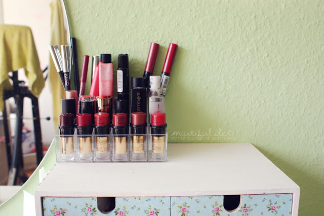 Ein weiteres Manko an der alten Aufbewahrung in der linken Tischecke war, dass die Sonne ziemlich doll drauf schien, so dass einige meiner Lippenstifte bereits ihre Form verloren haben TT_TT//