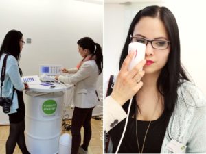 Danach folgte ein praktischer Teil mit den Hautanalysegeräten an denen wir unseren Hauttyp, unsere Sonnenempfindlichkeit, unser Hautalter und unsere Großporigkeit ermitteln lassen konnten. Zwar war es etwas schade, da wir uns alle geschminkt hatten und uns für den Test abschminken mussten und die Analyse nach einer direkten Reinigung nicht so genau sein kann, aber wir konnten ungefähr sehen wie unsere Haut abschnitt. (Ich hätte z.B. nie gedacht, dass meine Haut so sonnenempfindlich ist – nutze so gut wie nie eine Sonnencreme – oder dass meine Poren recht klein sind o.O//)