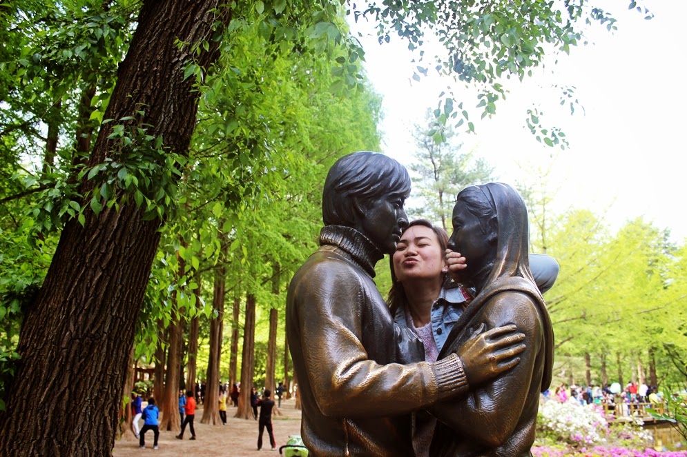Die Insel Nami ist besonders dafür bekannt, dass sie als Schauplatz eines der ersten international bekannten koreanischen Dramen “Winter Sonata” diente und man auf der Insel die berühmte Allee entlang laufen kann und Statuen der beiden Hauptdarsteller finden kann. [Schaue eigentlich eher selten koreanische Dramen und durch Winter Sonata habe ich mich vor 10 Jahren gequält xD]